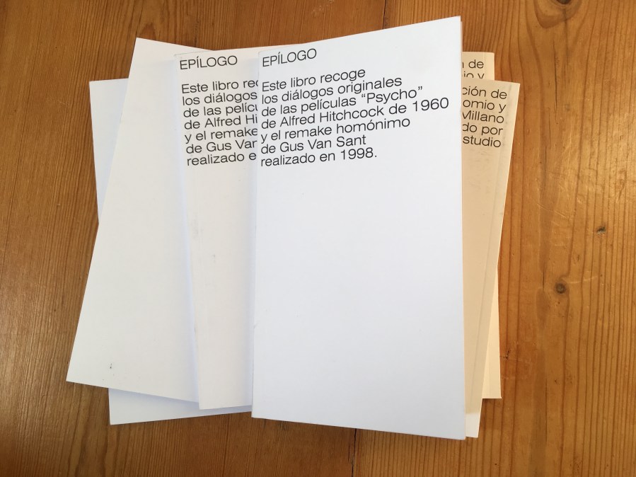 This book gathers the original dialogues of the movies «Psycho» by Alfred Hitchcock of 1960 and the homonymous remake by Gus Van Sant filmed in 1998.